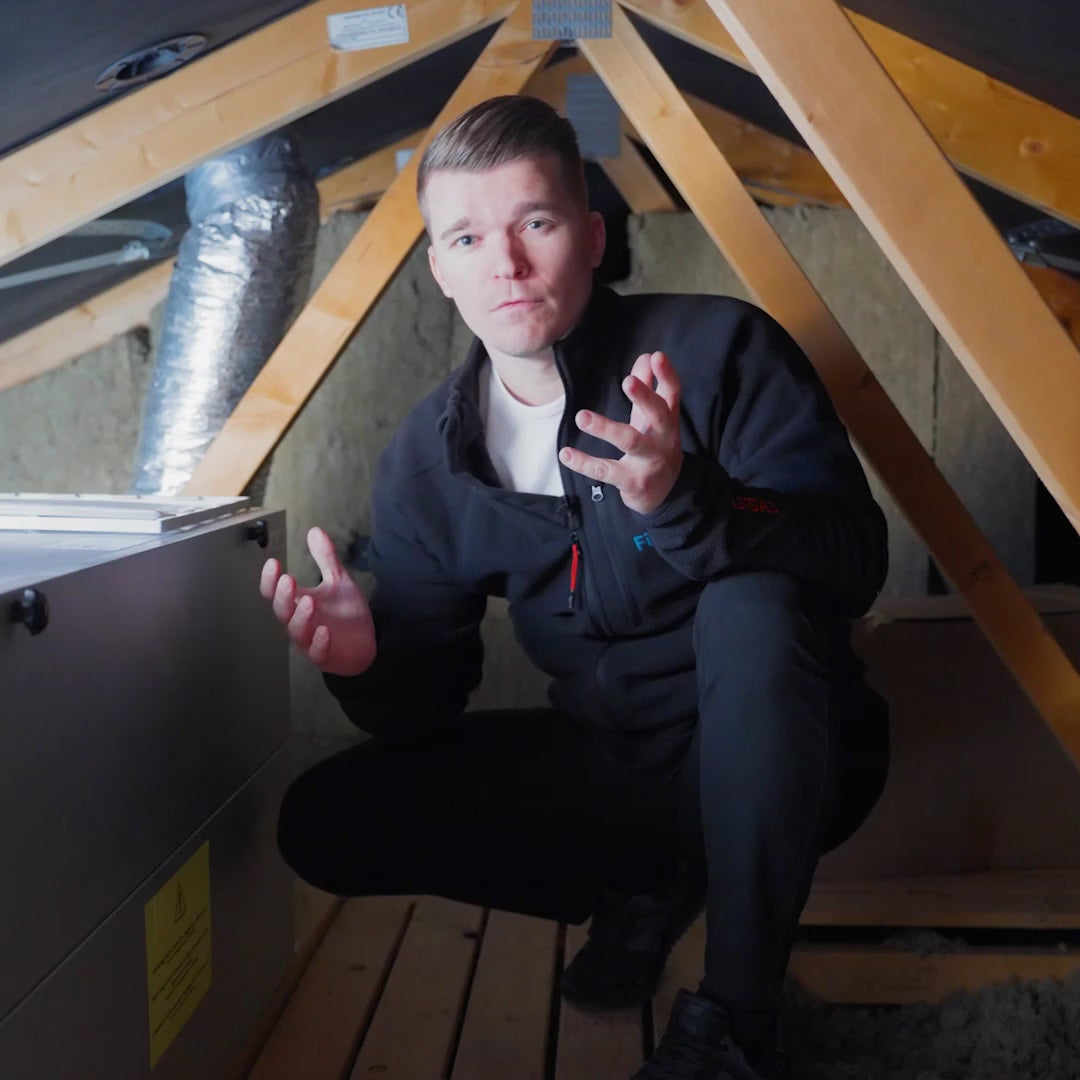 Dit ventilationsanlæg kan sidde flere forskellige steder. På loftet, i bryggerset/teknik rum eller skab. Det kan også sidde i din entré skjult oppe i loftet.