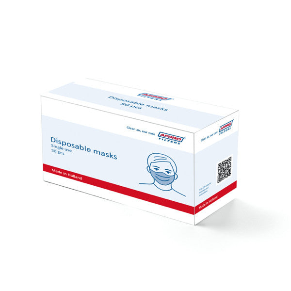 Egnet til offentlige områder, fly, offentlig transport mm. 3-lags beskyttende lag i filtermateriale, smeltet polypropylen Effektivitet på >99% på partikler ned til 3 mikron BFE (Bakteriefiltreringseffektivitet) på >99% Testet iht. den europæiske standard EN14683 Produceret i Holland af Afpro Filters
