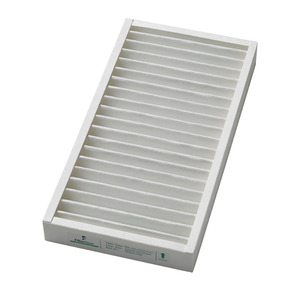 Du kan selv vælge hvilket filter der skal sidde i de to sider, men hvis du ønsker at filtrere små skadelige partikler eller fjerne lugtgener fra en nærlæggende brændeovn, så kan du med fordel vælge et F7 Pollenfilter eller F7 Kulfilter.