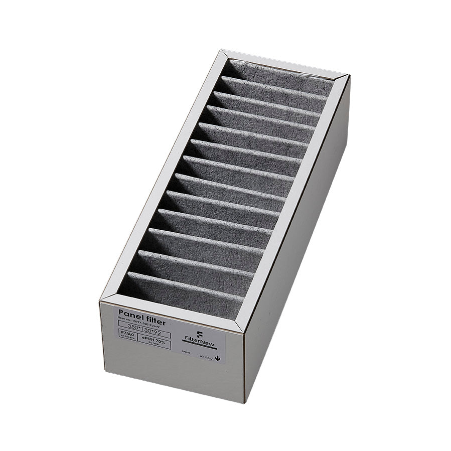 Kulfilter F7 (ISO ePM1 70%) er et kombineret pollen og kul filter der er lavet i aktivt kul, og minimerer udefrakommende lugtgener fra b.la. nærliggende brændeovne. Derudover filtrerer det de små skadelige partikler, som kommer fra røgen