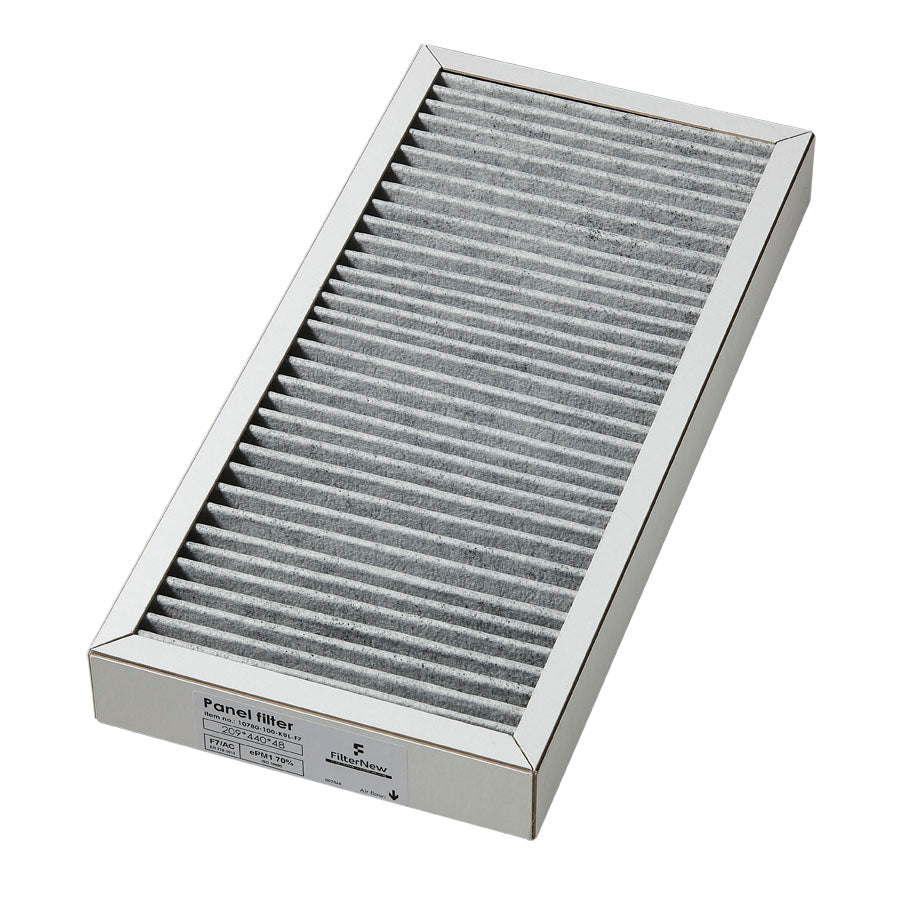 Kulfilter F7 (ISO ePM1 70%) er et kombineret pollen og kul filter der er lavet i aktivt kul, og minimerer udefrakommende lugtgener fra b.la. nærliggende brændeovne. Derudover filtrerer det de små skadelige partikler, som kommer fra røgen